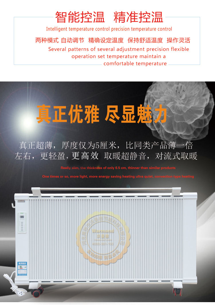沃曼德碳晶電曖器,分為壁掛式、地暖式,功率從900-1500W,造型美觀大方、結(jié)構(gòu)堅固耐用,