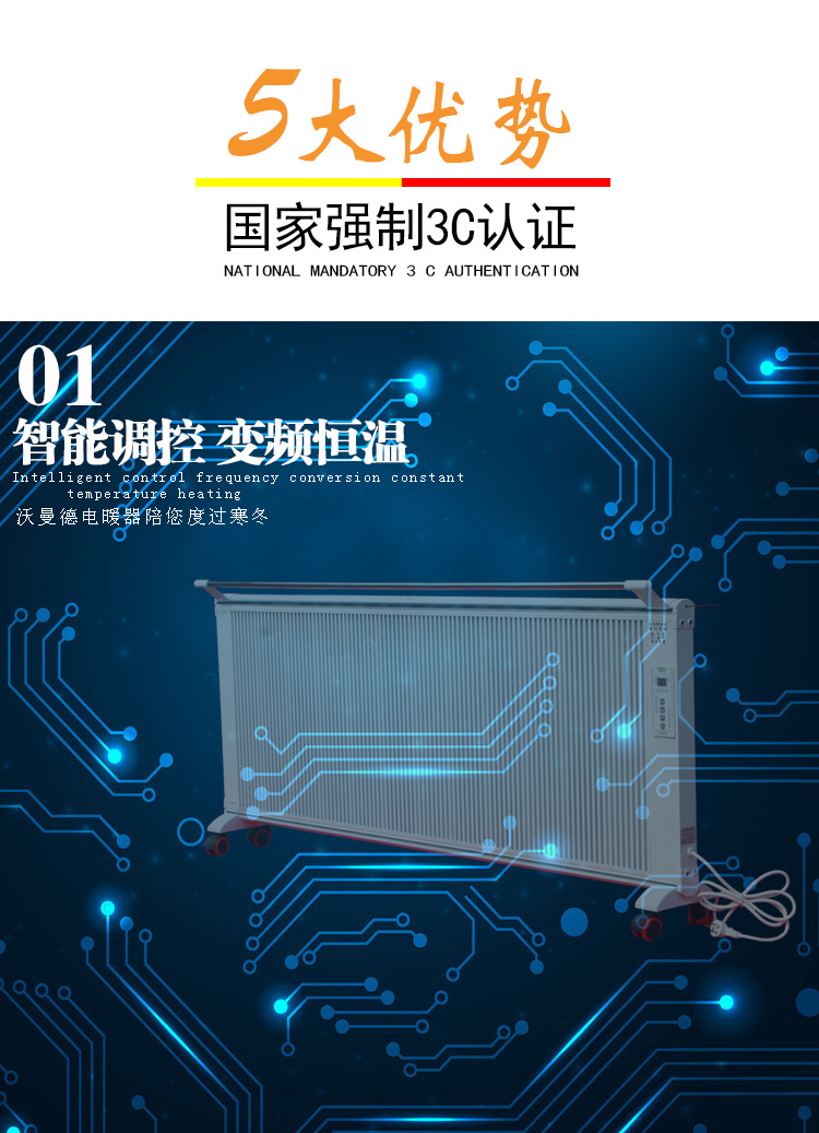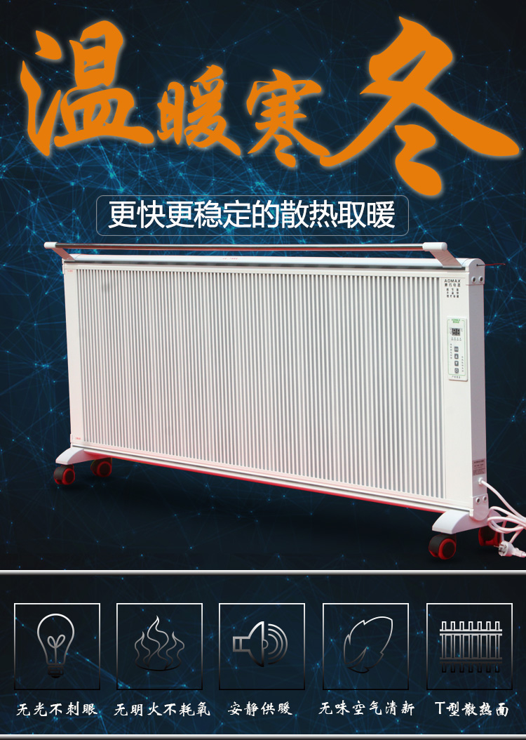 碳晶電暖器具有體積小重量輕、造型美觀大方、結(jié)構(gòu)堅(jiān)固耐用,無(wú)需增加任何配件,可隨意變換移動(dòng)使用位置等特點(diǎn)。發(fā)熱體,可隨意移動(dòng),任意放置,且可隨意攜帶,是家用采暖的創(chuàng)舉。